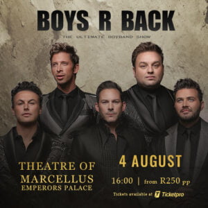 Experience the ultimate boy band tribute show on a nostalgic journey featuring a star-studded line-up including Willem Botha, Ruan Josh, Reynardt Hugo, Germandt Geldenhuys and Lee Scott as they pay homage to the iconic boybands that stole our hearts.