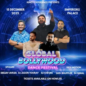 Joining him on stage will be South Africa’s top Bollywood DJs, dancers, and the legendary Dhol Guys, delivering an explosive mix of beats, lights, and moves that promise to keep you dancing all night long.