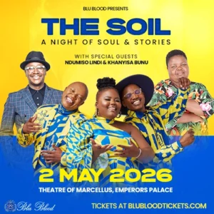 A Night of Soul & Stories is an intimate live experience that brings together the powerful harmonies of The Soil with the thoughtful, relatable comedy of Khanyisa Bunu and Ndumiso Lindi.