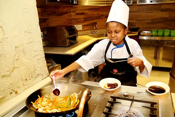 To make his dream an unforgettable experience, Reach for a Dream, in conjunction with Emperors Palace, invited Asi to don an apron and spend time in the Rosetta’s Bistro kitchen. With the help of the Palace of Dreams’ Sous Chef Jerry Chauke and Commi Chefs Makoma Letsie and Khanyi Hadebe, Asi quickly started making pizzas, trifle, and even chicken stir fry, which he enjoyed with his family and the chefs.